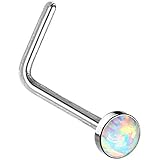 "L" bend Nose Stud Rings Freedom Fashion Opal Set Flat Top 316L Surgical Steel