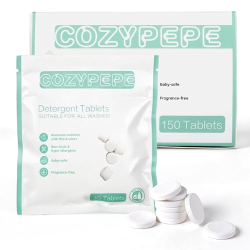 COZYPEPE Baby Bottle Washer Detergent Tablets, 150 Count Fast-Dissolving Gentle Formula, Removes Milk Residue Grease & Odor, Compatible with All Brands, for Washer Sterilizer Dryer