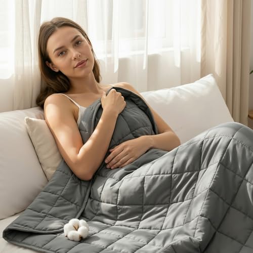 Weighted Blanket 15-pounds 48 x 72 - Adults Cooling Heavy Twin Size Blankets for All-Seasons Sleeping, Soft & Breathable with Premium Glass Beads, Machine Washable