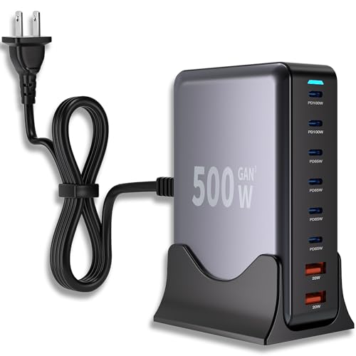 500W GaN USB C Charger Block Charging Station 8 Port Fast Charger Block with Dual 100W PD USB-C Fast Charging Station Hub Compatible with iPhone 17/16 15/14/13/Pro Max/MacBook Pro/Air/All iPad (Black)