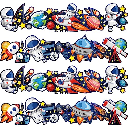 Whaline 69Ft Outer Space Bulletin Board Border Night Sky Astronauts Star Decoration Borders Cartoon Galaxy Bulletin Board Stickers for School Classroom Office Home Party Decoration