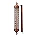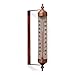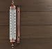 This simple, attractive tube shaped outdoor thermometer can mount on a wall, fence, window or windowsill of your house. It adjusts to the left or right so that you can set it at the best angle for viewing indoor or out. The frame and ends of the thermometer are made of steel, for durability, with a an antique copper finish on the thermometer top and bottom, and an antique finish on the mounting bracket. Vertical height is 10 inches, tip to tip. The clear optical plastic portion measures 6 1/4 inches in height. Includes 2 screws for mounting. This will become one of your favorite home thermometers once you see it in your garden, deck or patio. See the weather before you go outside. Termometro de Pared, termometro exterior.