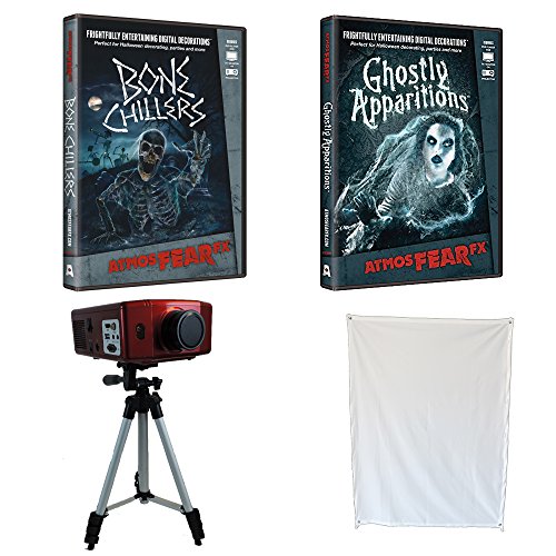 AtmosFear FX Ghostly Apparitions & Bone Chillers Special. DVD's Plus LED Virtual Projector & Rear Projection Screen w/ Mounting Hardware for Virtual Halloween Window Projection Movies