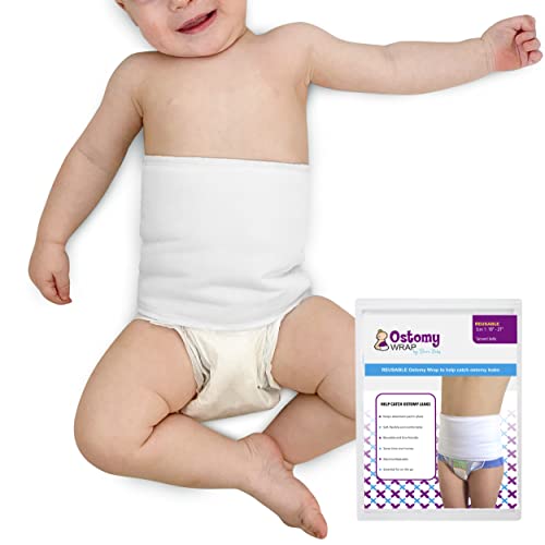 BABY BLOWOUT BLOCKER Pediatric Ostomy Wrap Mild Compression Band - White, Waist Size 18 - 21 Inches | Compression Waist Wrap Bandage Support Belt to Prevent Ostomy Leaks and Secure G Tube and Feeding Tube (OWWT,Size 1)