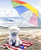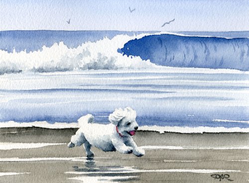 "Bichon Frise At The Beach" Art Print Signed by Artist DJ Rogers