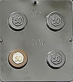 Each piece is 1-1/2-inch diameter by -3/8-inch depth with 11 cavities per mold. This mold makes approximately 60 pieces per pound of chocolate. Do not use for hard candy or other hot ingredients.