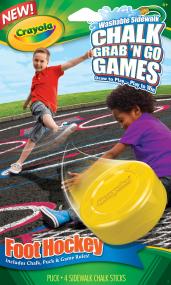 Crayola Chalk Grab ‘n Go Games get kids moving with active, collaborative play. Kids will have fun drawing the play space for a foot hockey game with four bright colors of sidewalk chalk, and they'll expend healthy physical energy.