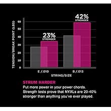 Throughout rigorous torture tests the NYXL strings stand up to whammy bar dives and bends better than any conventional string.