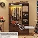 Farmhouse 3 Doors Armoire Wardrobe Closet w/Folding Sliding Barn Door and Lights, LED Armoire Closet w/Drawers for Bedroom, Freestanding Wooden Wardrobe Storage Closets w/Hanging Rod,Rustic Brown