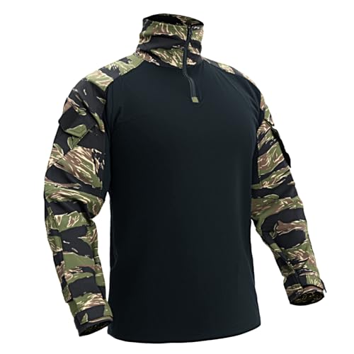 IDOGEAR SPORTS G3 Combat Shirts Men’s Tactical Shirt with Elbow Pads 1/4 Zipper Collar 2 Pockets Long Sleeves BDU Top for Airsoft Military Outdoor Clothing (VTS, Small)