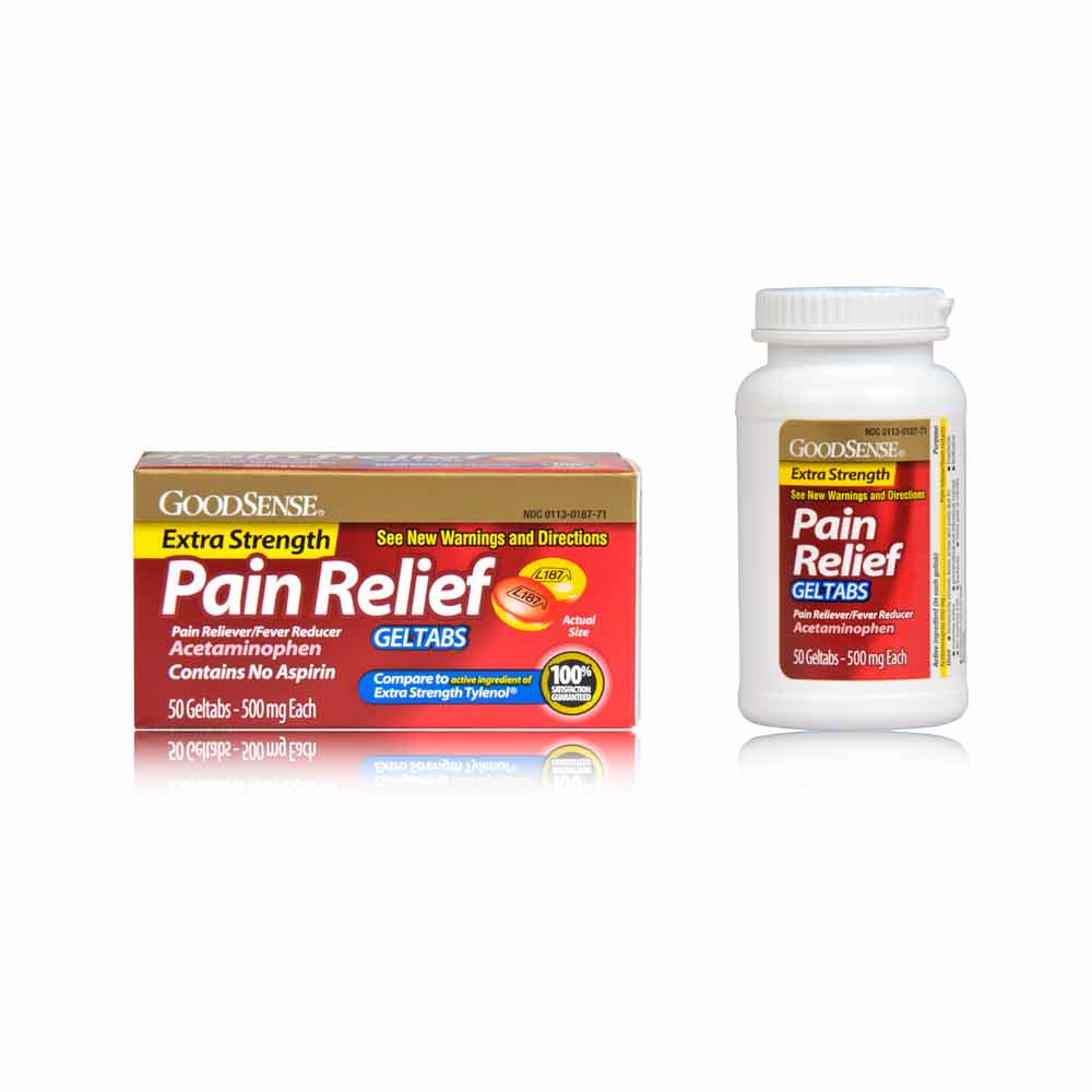 Good Sense Extra Strength Pain Relief Geltabs temporarily relieve minor aches and pains resulting from the common cold, headache, backache, minor pain of arthritis, toothache, and more. So, until turkeys can fly, fight pain with Good Sense.