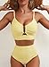 Herseas Women Two Pieces Textured Bikini Set Push Up V-Wired Cutout 2026 High Waisted Spaghetti Straps Swim Suit Trendy Vacation Outfits Summer 2026 Yellow Cream Small