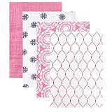 Hudson Baby Four Layer Muslin Tranquility Blanket, Pink Feather, 46 x 46 Inch
