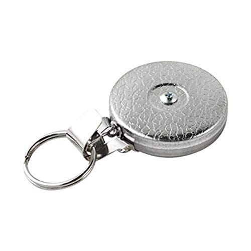 KEY-BAK Original Steel Cable Retractable Key Holder, 48" Stainless Steel Cable, Chrome Front, Steel Belt Clip, 8 oz. Retraction, Split Ring