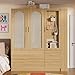 PAKASEPT 3 Doors Armoire Wardrobe Closet with Rattan,71'' Tall Freestanding Wooden Wardrobe Storage Cabinet for Bedroom with Hanging Rod,LED Vanity Mirror,Drawers,Clothes Hook,Open Shelves,Natural