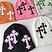 Pooyikoi,Y2K Dark Cross Wool Hat Cross Pattern Fashion Loose Pile Hat Slim Knit Hat Cold Hat Autumn and Winter(Black,One Size)