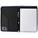 Bring a little inspiration to your business with one of our richly detailed zippered portfolios. This lovely cornflower blue folder features a debossed floral design and a wrapping solid band with debossed text "Rejoice", and Scripture from Psalm 100:2 skillfully wrought. The portfolio accommodates a standard 8 1/2 x 11 3/4 legal pad (included). Inside the padded and lined folder, you will find a pen loop (pen included), a slip slot, slots for 5 cards and an ID window. The portfolio is constructed of quality man-made material imported from Italy, with the look and feel of real leather (trade name LuxLeather).