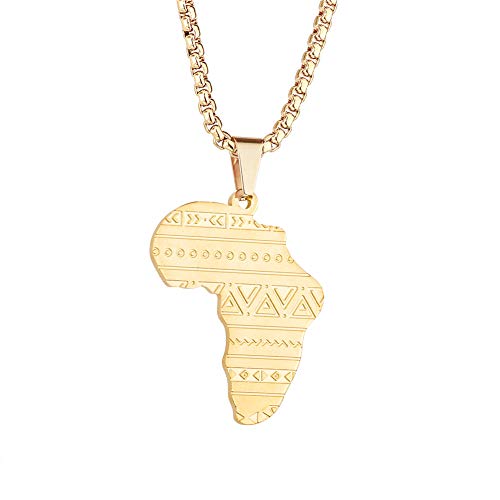 SENTERIA African Map Pendant Necklace 26inch Long Chain Titanium Stainless Steel 18k Gold Necklace for Men Real Gold Pendant & Chain Hip Hop Jewelry