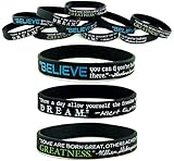 SERENITY PRAYER SILICONE BRACELETS, BULK 10-PACK - Unisex Black w/ Teal & White Print - Serenity Prayer Silicone Rubber Bracelet Wristbands for Men Women Adults