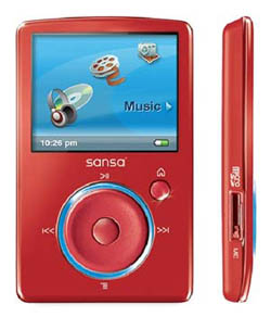 Smaller than a credit card and as thin as a pencil, the new Sansa Fuze MP3 player looks great--and has the brains to match. (Black player shown here; click image to view larger.) |
