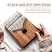 - 【Thoughtful Design】Unlike traditional thumb pianos, the Shaevle portable thumb piano features a curved design at the handrest, allowing your hand to fit more comfortably against the instrument during play. This provides a smoother playing experience and more balanced tone. The keys are engraved with musical notes for quick mastery.