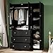 VOWNER Armoire Wardrobe Closet with Drawers and Mirror, 71" Clothing Storage Cabinet with Hanging Rod, 4 Doors Wooden Wardrobe Cabinet for Bedroom, Large Capacity Storage